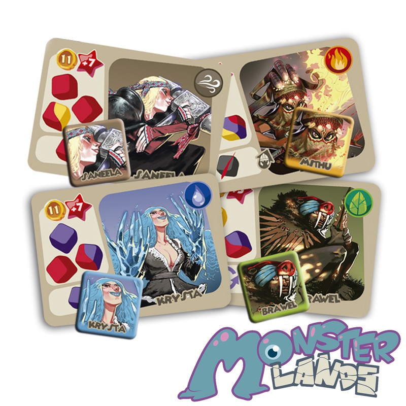 Promo card set of 4 unique Mercenaries. These Mercenaries apply the multi-colored die concept to their contribution dice, making them powerful and versatile.
